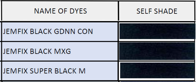 Jamfix black series reactive dyes can offer a wide range of black shades according to different dyeing machines and processes. The good economy and versatility of Jemfix black series can meet the follow- ing requirements of the market: high wet fastness, good levelness, high build-up, discharge ability etc.
